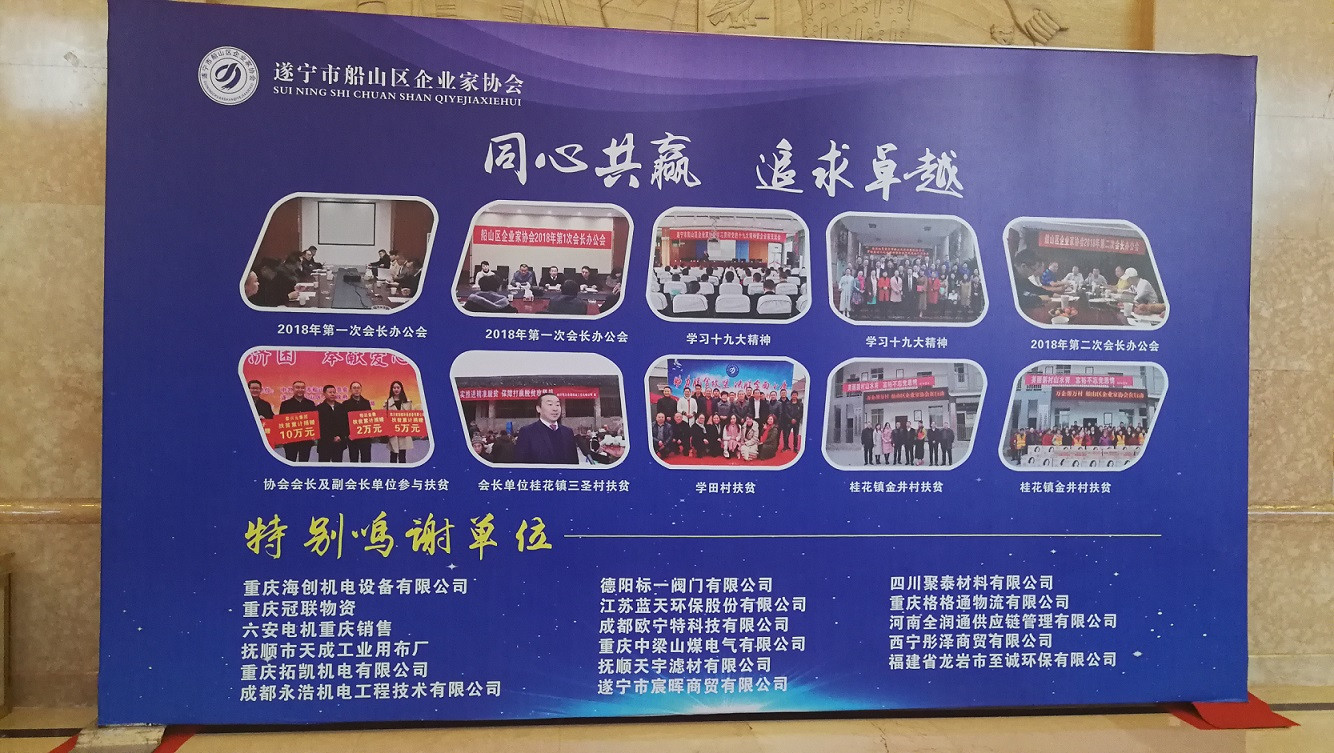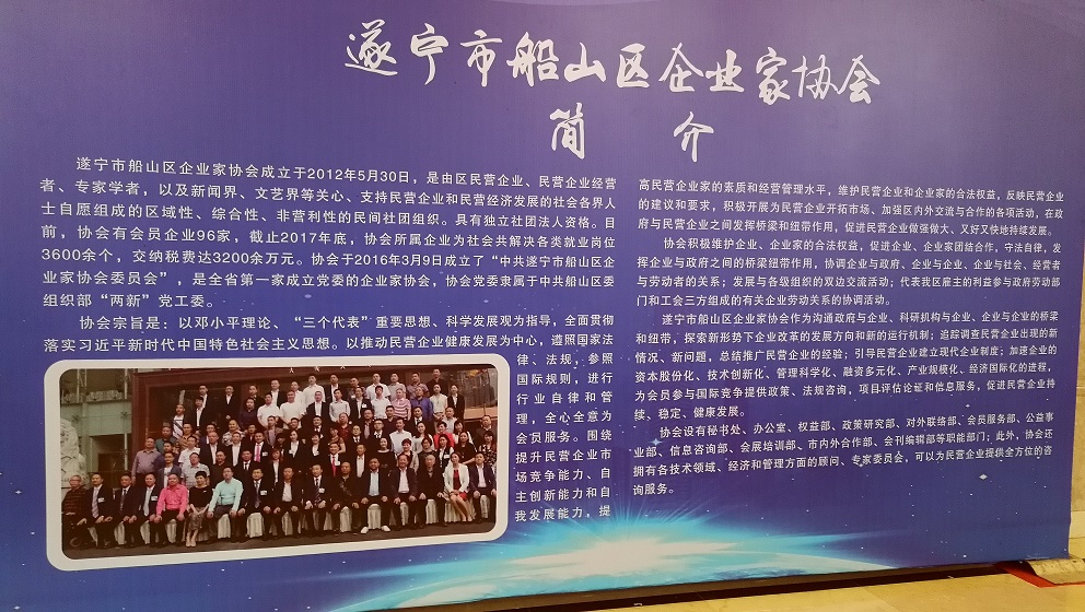 遂寧市船山區(qū)企業(yè)家協(xié)會是由船山區(qū)境內(nèi)的企業(yè)家(含企業(yè)高層管理人員)和全區(qū)行業(yè)性、區(qū)域性的社會團體自愿組成的非營利性的社團組織,將為推動船山區(qū)“兩化”互動、“三化”聯(lián)動,強力攻堅“四大會戰(zhàn)”做出更大的貢獻。